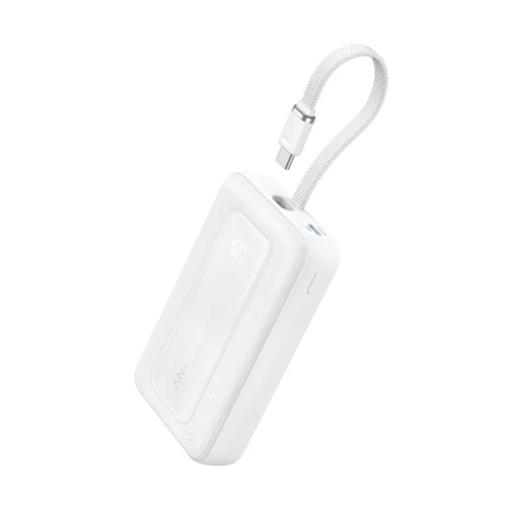 Anker Zolo Power Bank (10K, 30W, Built-In USB-C Cable) White